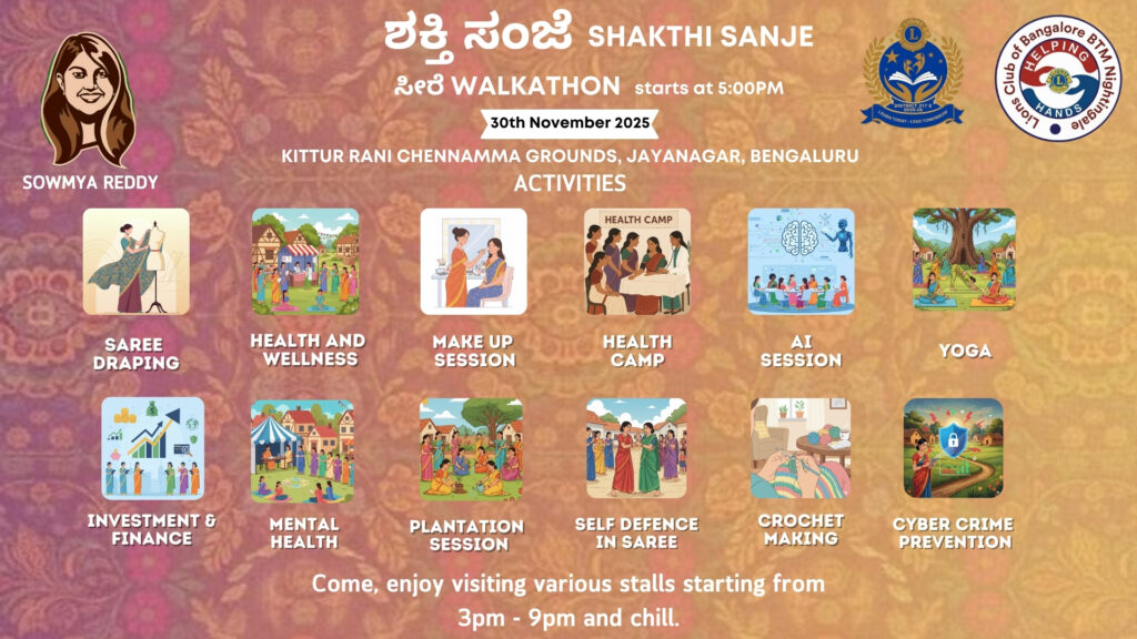 Let’s wear our prettiest saree – our mother’s old Mysore Silk saree or our handloom Ilkal or Udupi cotton saree to walk.